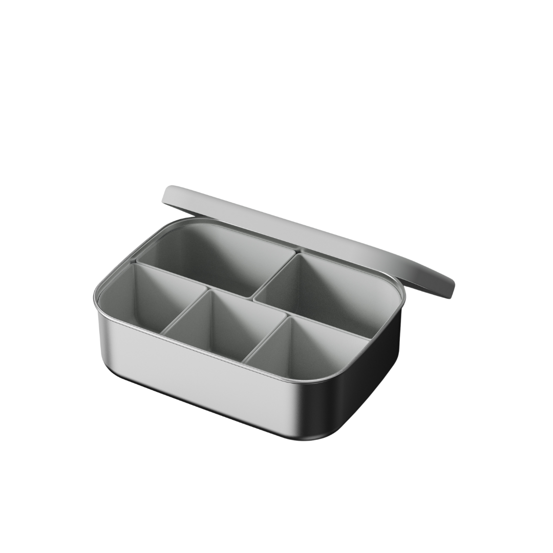 Maak je lunchmomenten georganiseerd én lekvrij met onze RVS lunchbox met siliconen vakjes. De lekvrije siliconen deksel houdt alles netjes gescheiden en voorkomt lekkende tassen. De duurzame lunchbox van RVS is vaatwasserbestendig en ideaal als bento broodtrommel voor school, werk of een dagje uit. Dankzij de 5 uitneembare siliconen vakjes deel je jouw lunch flexibel in of haal je vakjes eruit voor één groter compartiment. Stijlvol, praktisch en gemaakt voor dagelijks gebruik.